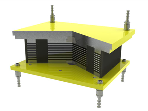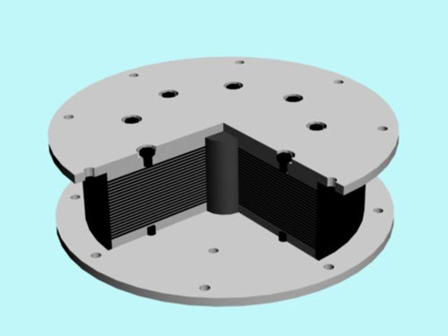 國產(chǎn)高阻隔震橡膠支座按照國標(biāo)GB20688設(shè)計(jì)的產(chǎn)品又稱HDR支座,它是在天然橡膠中加入各種配合劑,用來提高橡膠的阻尼性能(增加滯后損失,降低其儲(chǔ)存模量),然后利用這種具有阻尼效果的橡膠制成的與普通橡膠支座結(jié)構(gòu)近似的一種鋼板和橡膠通過熱硫化構(gòu)成的疊層產(chǎn)品。該產(chǎn)品隔震性能好,適用范圍廣,是一款性價(jià)比較高的新型橋梁和房屋建筑產(chǎn)品。因其加工制造工藝簡(jiǎn)單,產(chǎn)品力學(xué)性能可靠,在5.12大地震之后得到了廣泛的應(yīng)用和發(fā)展。
